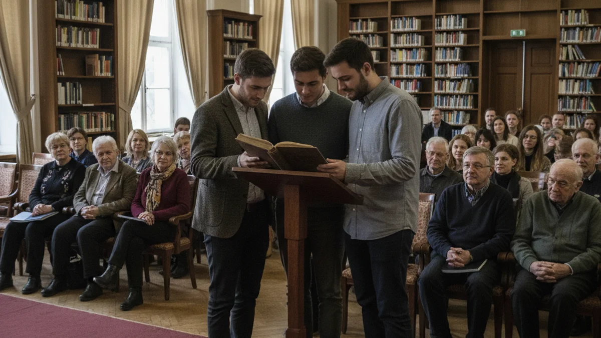 Presentació d'un llibre de poesia pòstum en una sala d'actes amb familiars i públic assistent.