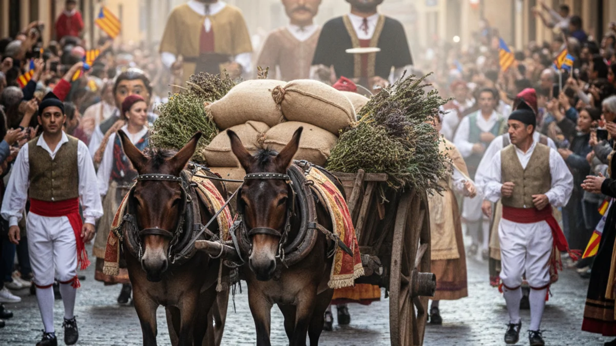 El narrador històric de la rua, Jacint Orriols, que fa cinquanta anys que hi participa, va recordar el sentit profund de la celebració, destacant que Balsareny sempre va ser un punt de pas i sojorn per als traginers. L'acte central de diumenge es va iniciar amb la benedicció dels animals per part del mossèn Antoni Quesada, seguit dels gegants i la mula Merlet.