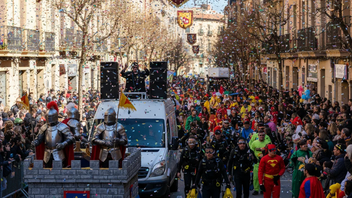 La desfilada ha estat encapçalada pel grup Ametllers al fons del mar i ha finalitzat amb una furgoneta de joves i música de DJs que ha mantingut l'ambient festiu fins al final del recorregut, malgrat les ratxes de vent que han acompanyat la jornada.
