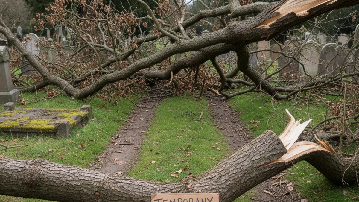 Els forts vents registrats durant la jornada de diumenge van causar danys significatius a l'interior del Cementiri General de Reus, obligant a prendre mesures de prudència immediates per evitar riscos.