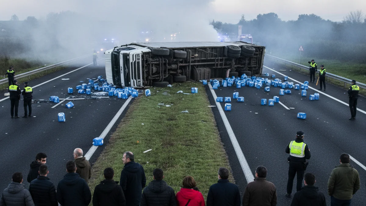 A banda de la càrrega de fertilitzant, els efectius d'emergències estan treballant intensament per contenir una fuita de combustible que s'ha produït al dipòsit del propi comboi. La prioritat actual és evitar que el carburant s'estengui per la calçada mentre es gestiona la retirada del vehicle accidentat.