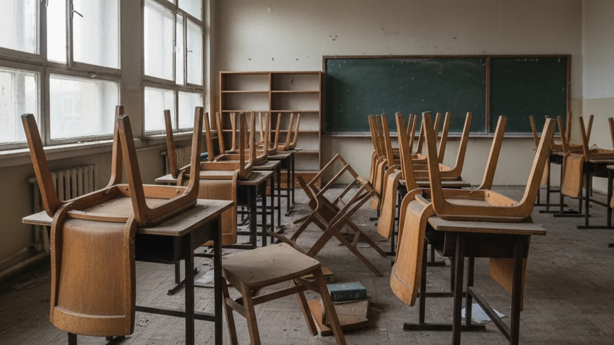 Amb les taules i cadires girades al terra per simbolitzar que el sistema educatiu està de cap per a avall, els mestres han volgut cridar l'atenció sobre la degradació d'aquest pilar social. El docent Néstor Ferré, amb tres anys d'experiència, explica que la plantilla es troba totalment desbordada per les ràtios elevades i una inclusió que no rep el suport necessari.
