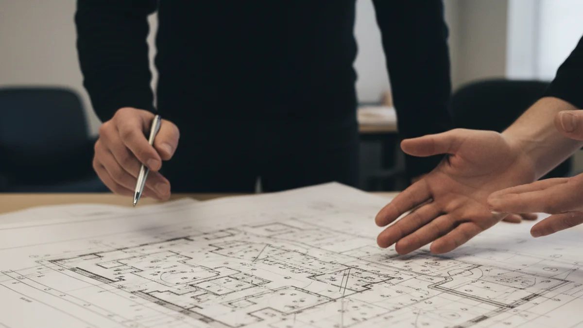 Representació genèrica d'una alcaldessa en una reunió de treball, sense cares reconeixibles, discutint plans urbans.