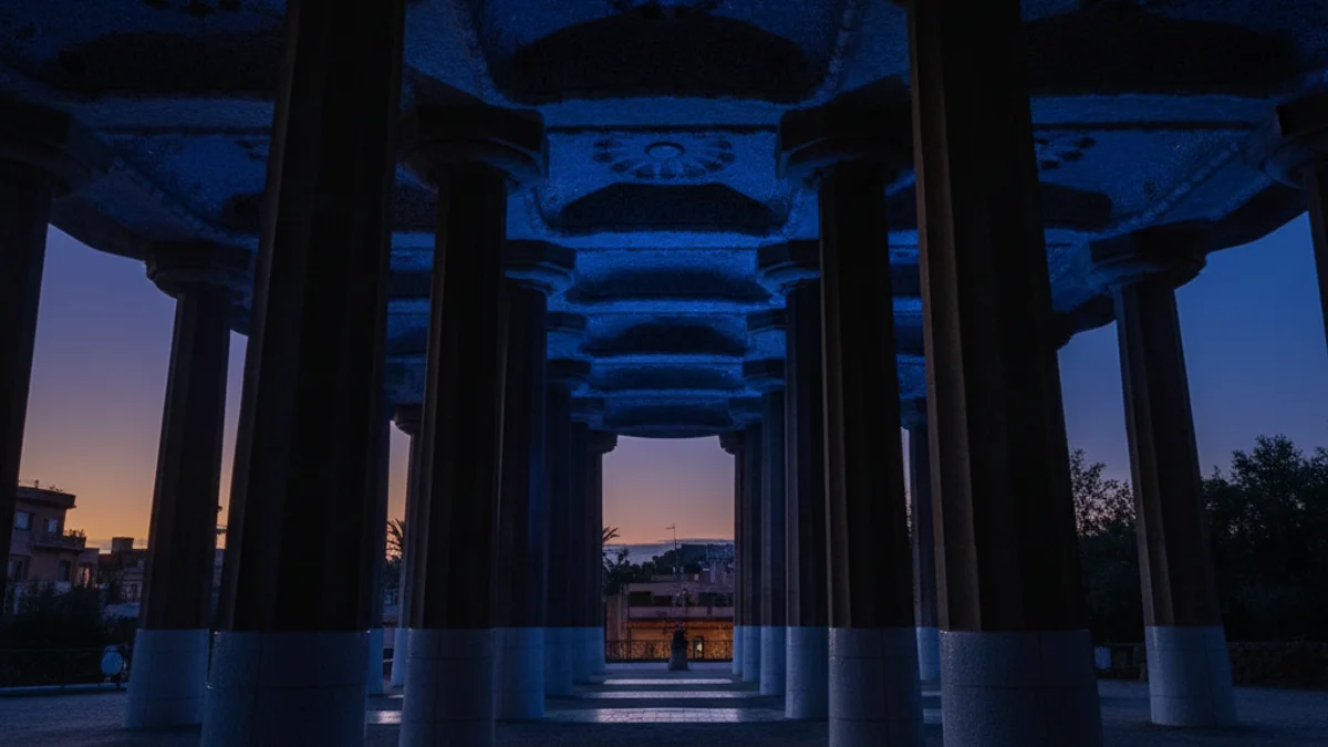 L'espai dissenyat per Antoni Gaudí s'ha sumat a l'edició especial del Festival d'Arts Lumíniques Llum BCN 2026. Durant tres nits, des de les sis de la tarda fins a les deu de la nit, la Sala Hipòstila, l'escalinata monumental i els pavellons d'entrada es tenyeixen del color blau de la Unesco.