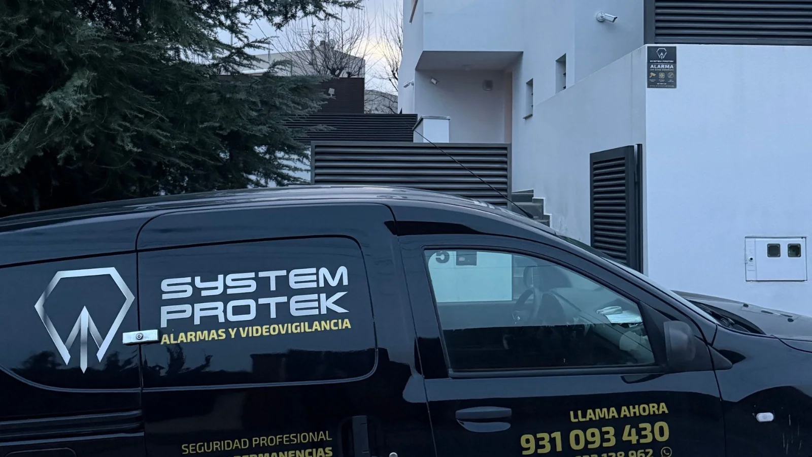 Vehicle corporatiu de System Protek durant una instal·lació de sistemes de seguretat en un habitatge a Catalunya.