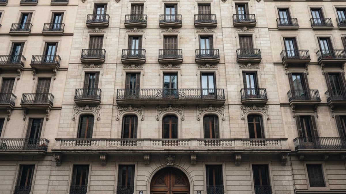 Façana d'un bloc de pisos antic a l'Eixample de Barcelona, símbol de la resistència veïnal contra els fons inversors.