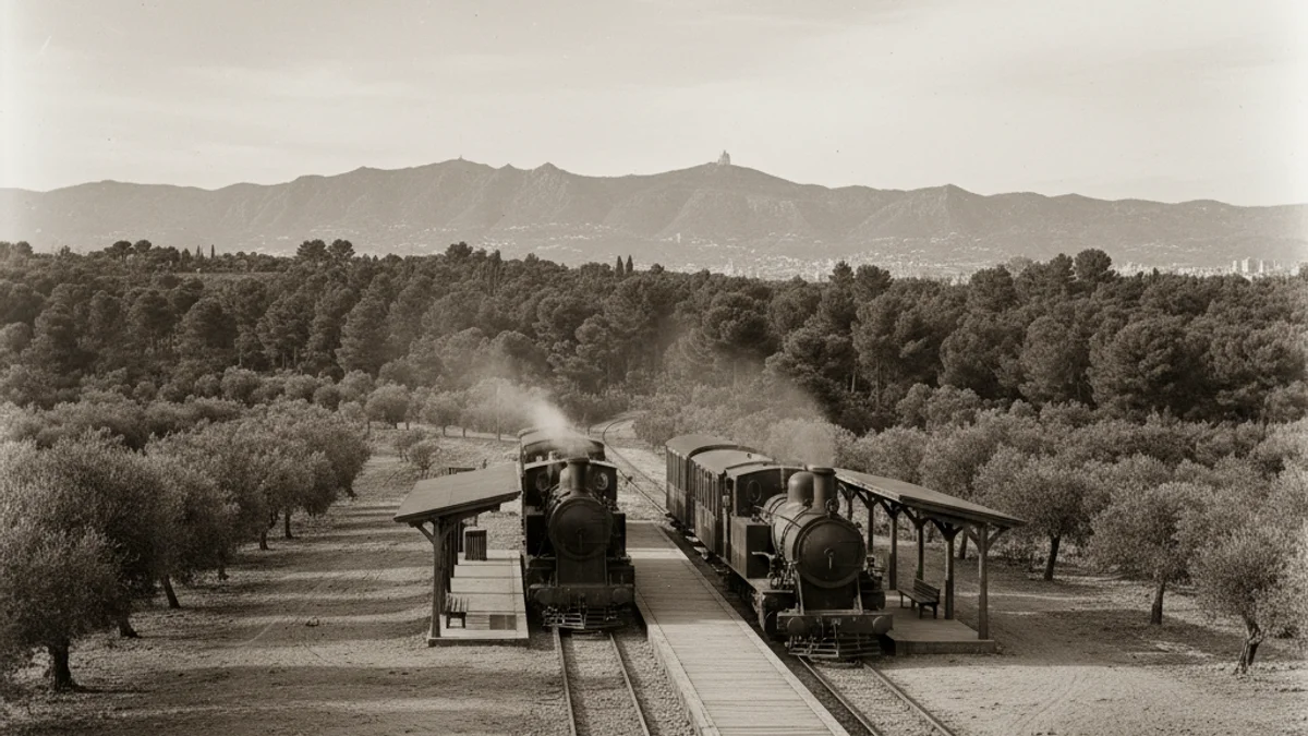 L'actual centre neuràlgic de Barcelona presentava un aspecte irreconeixible a mitjans del segle XIX. Segons les imatges del Fons Lluís Tuells, conservades al Museu del Ferrocarril de Catalunya, l'espai que avui ocupa la plaça de Catalunya era una esplanada flanquejada per un bosc frondós que arribava fins a la falda de Collserola.