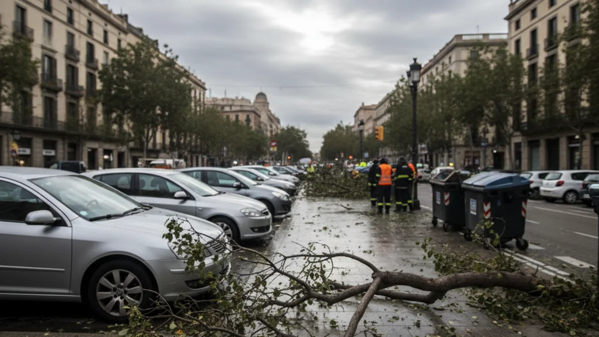 A la ciutat de Barcelona s'han registrat 36 trucades per diverses incidències, mentre que en altres municipis de l'entorn metropolità els Bombers han hagut d'intervenir per la caiguda d'arbres sobre vehicles i la via pública. En localitats com Sant Cugat del Vallès, un pi de grans dimensions ha caigut sobre dos cotxes aparcats a l'avinguda de Francesc Macià, tot i que no s'han hagut de lamentar ferits.