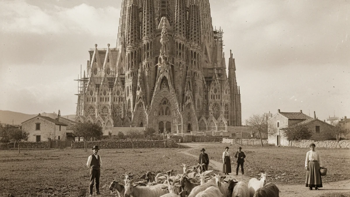 La imatge, que s'ha convertit en un fenomen viral a les xarxes socials, va ser captada per un aficionat a la fotografia i no per un dels grans noms de l'època. L'arxiu de Comas Llaberia, que conté prop de 3.000 fotografies, ha sortit a la llum mostrant la construcció d'icones com el Park Güell, la Pedrera o l'Hospital de Sant Pau.
