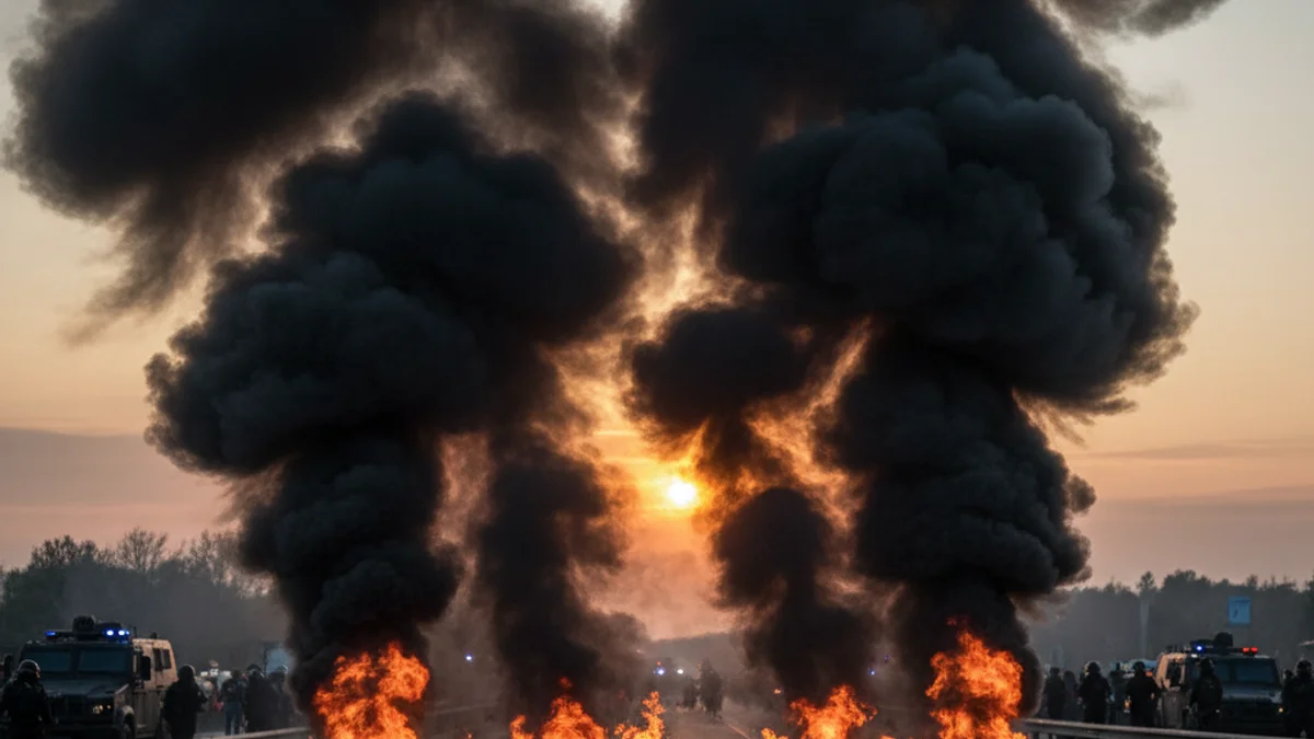 Cap a 2/4 de 5 de la tarda, els manifestants van encendre tres fogueres utilitzant pneumàtics, plàstics i bales de palla. Aquesta acció va generar un fum molt dens i negre que va reduir dràsticament la visibilitat a la calçada de l'autovia.