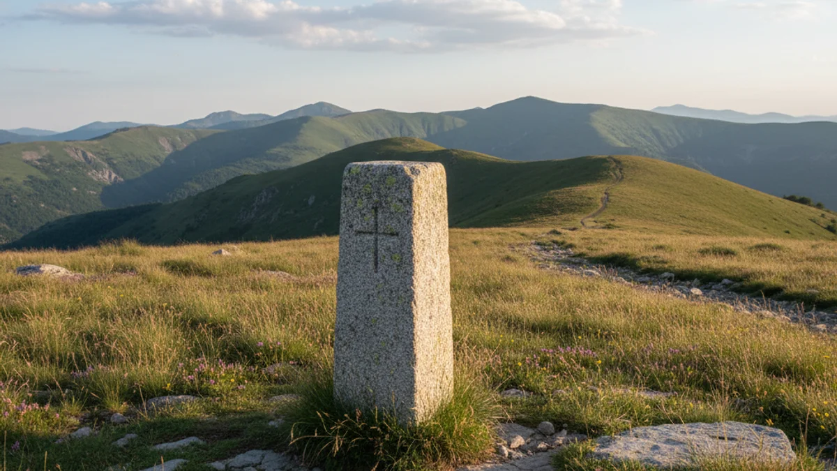 Vista de les fites frontereres que delimiten el terme municipal de Llívia amb el territori francès.