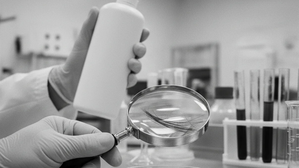 Imatge genèrica d'una persona rentant-se els cabells o d'un flascó de xampú en un context de laboratori o bany.