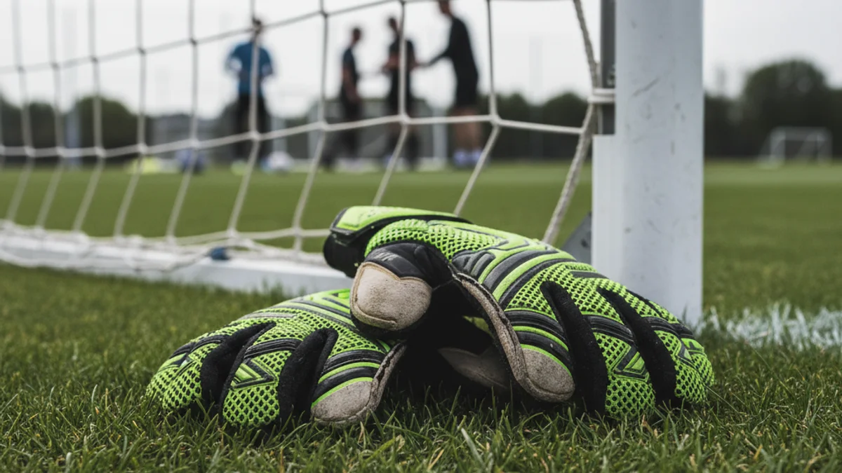 Imatge genèrica d'un porter de futbol amb guants, preparat per a l'entrenament en un camp verd.