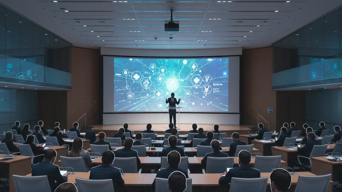 Professionals de la salut i serveis socials assistint a una conferència sobre atenció a la cronicitat.