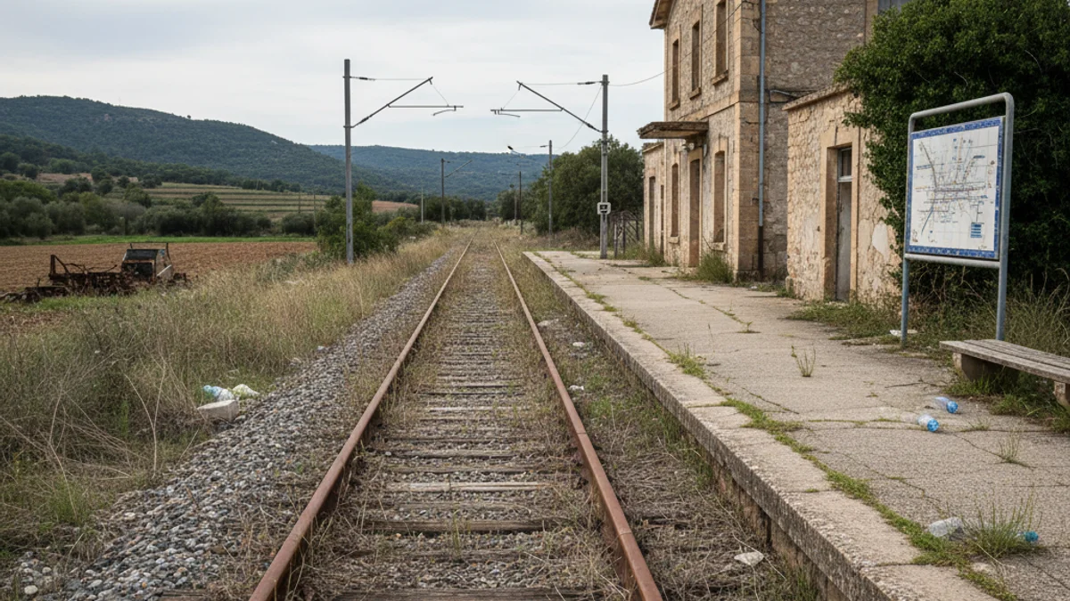 Imatge genèrica d'una estació de tren regional o una via de ferrocarril a la comarca de Ponent, amb focus en la infraestructura.