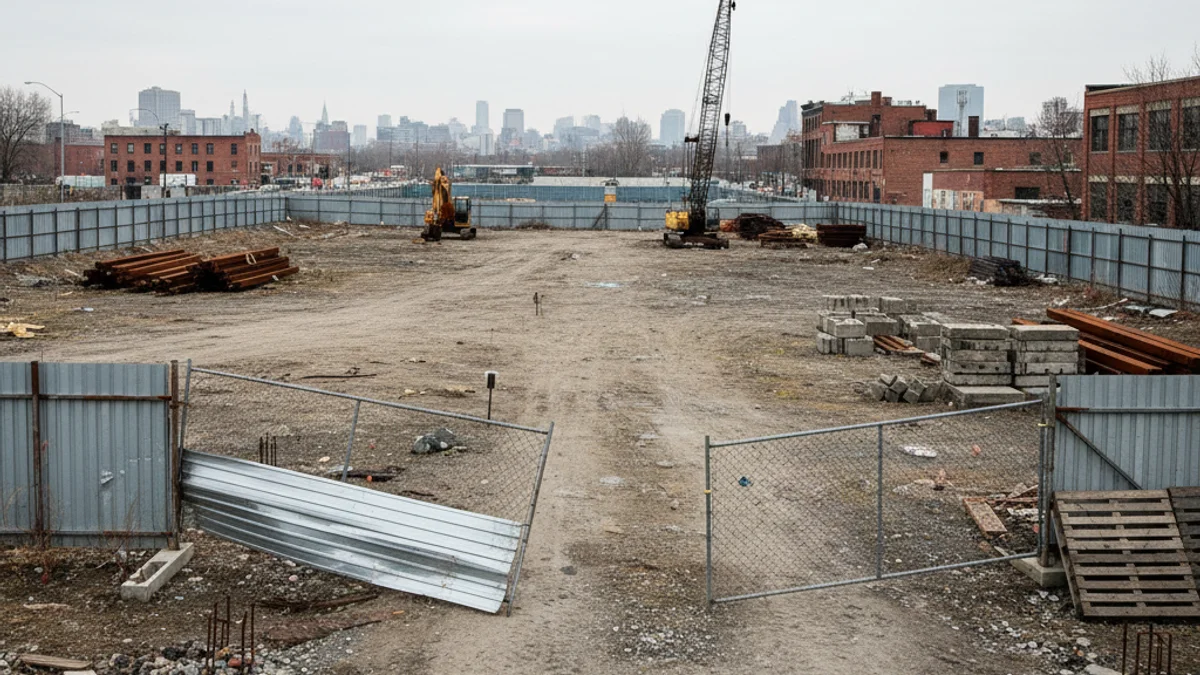 Vista genèrica d'un terreny industrial buit o una parcel·la urbana, simbolitzant el solar de la mesquita.