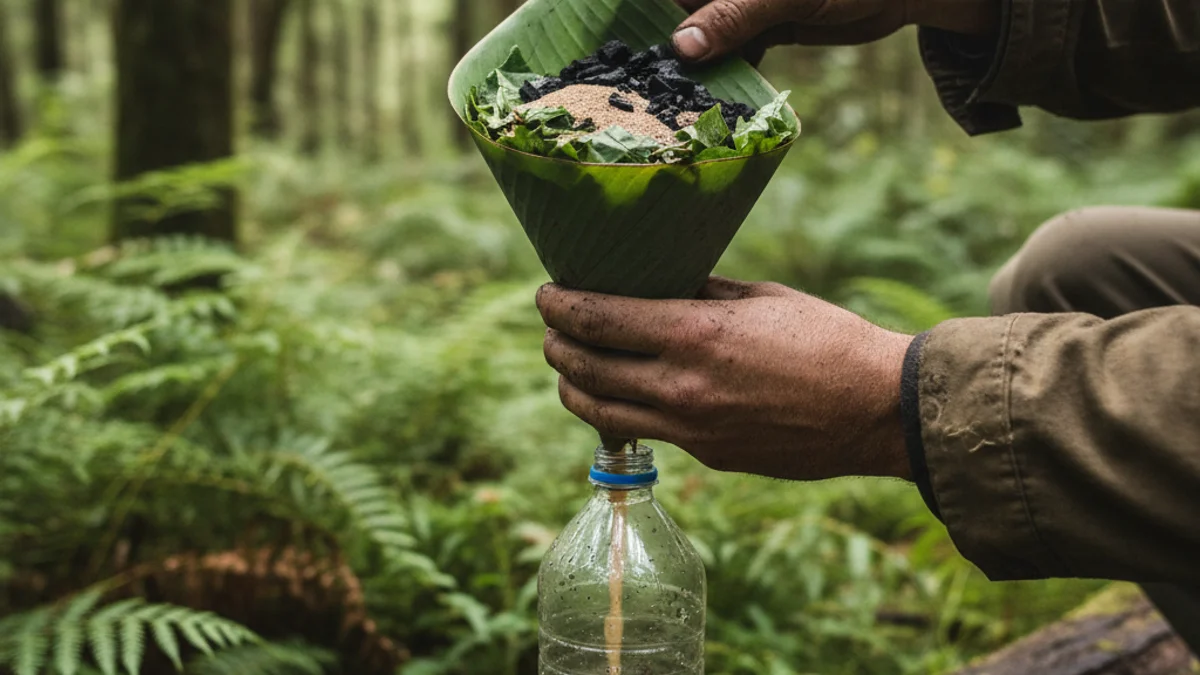 Imatge genèrica d'una persona aprenent a potabilitzar aigua en un entorn natural, simbolitzant la supervivència.
