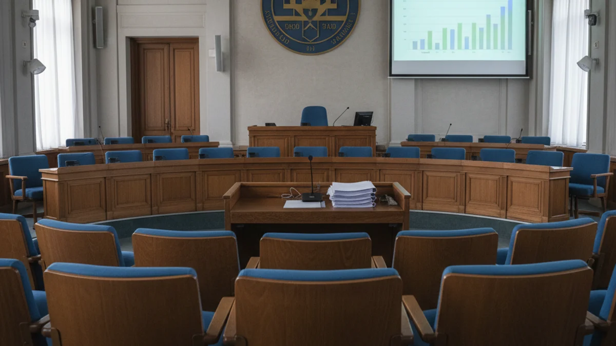 Imatge genèrica d'un ajuntament o d'un ple municipal durant una votació de pressupostos.
