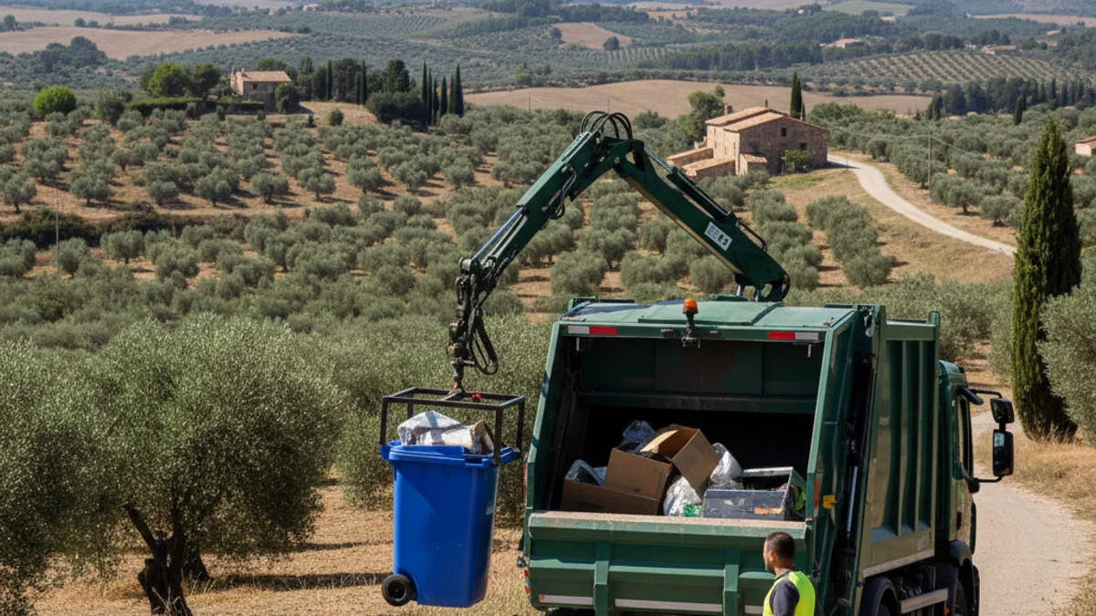 Imatge genèrica d'un contenidor de reciclatge o un camió de recollida de residus en un entorn rural.