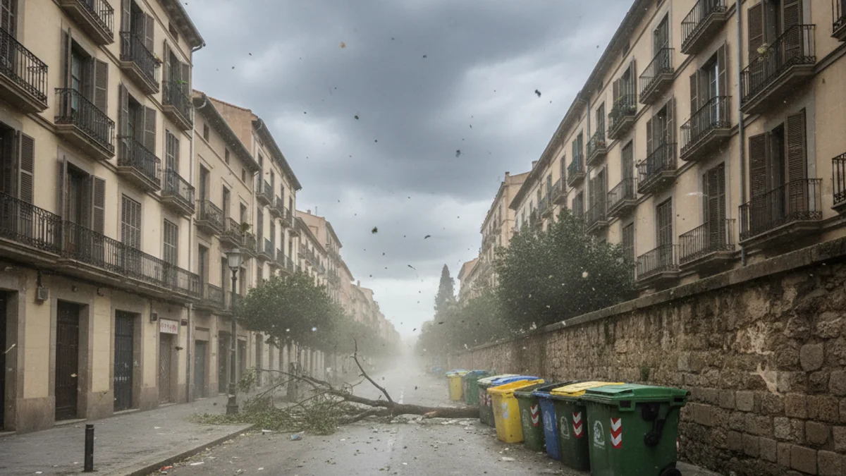 Les ratxes de vent han fregat els 70 km/h a la ciutat, segons les dades de les estacions del Meteocat. Aquesta situació ha provocat la caiguda d'arbres en punts com l'avinguda de Matadepera i desperfectes en edificis, com el cas d'una coberta al carrer de l'Himàlaia o un tendal al carrer de Lusitània.