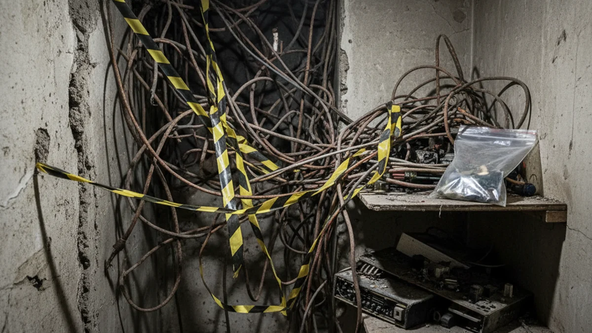 Imatge genèrica d'una operació policial en un local tancat, amb focus en la infraestructura elèctrica fraudulenta.