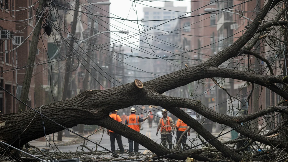 L'incident s'ha produït a l'altura del número 200 del carrer de Brutau, a l'Eixample de Sabadell. La caiguda, notificada als Bombers de Sabadell a les 12:08 hores, ha afectat directament el cablejat elèctric, causant danys materials significatius i obligant a tallar els dos sentits de circulació.