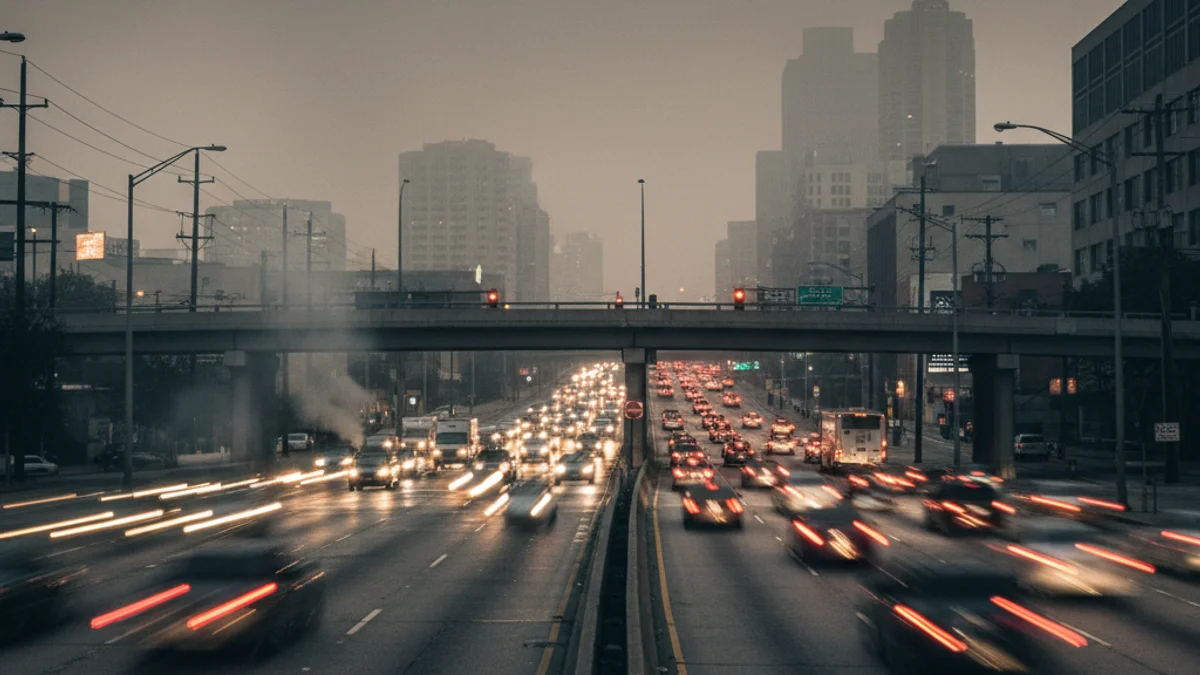 Imatge genèrica d'una ciutat amb trànsit dens i boira, simbolitzant la contaminació de l'aire.